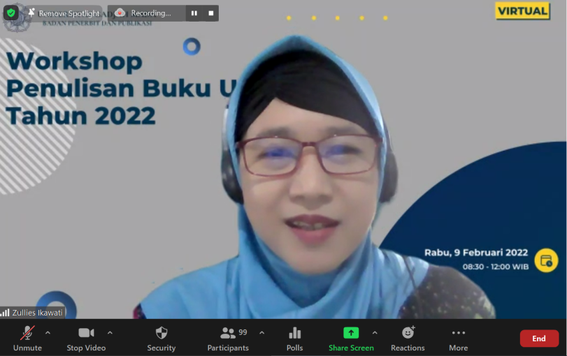 Wednesday, February 9, 2022 BPP UGM held a virtual UGM book writing workshop. This workshop is one of the efforts to increase the quantity and quality of books published by the UGM academic community. As stated by the Head of BPP UGM, Prof. Widodo, SP, M.Sc. Ph.D, that books are one of the main types of university performance index achievements. On this occasion, he also conveyed the importance of choosing a publisher who is not predatory so that the quality of the books published can be guaranteed, one of which is by choosing a reputable academic publisher.