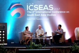 The 2nd International Conference of South East Asia Studies (ICSEAS) 2017 digelar pada Rabu dan Kamis, 27- 28 September 2017. ICSEAS merupakan satu dari rangkaian konferensi internasional tahunan dalam agenda UGM Annual Scientific Conference (UASC) yang diselenggarakan oleh Badan Penerbit dan Publikasi Universitas Gadjah Mada (BPP UGM). Konferensi internasional klaster sosial ini mengangkat topik “Explore the borders of South East Asia as philosophical, social, cultural, geographical, political, institutional, and pshycological”. Topik ini dianggap sesuai dengan kondisi dalam negeri beberapa negara Asia Tenggara yang sedang mengalami konflik sosial yang sama. Seperti yang disampaikan oleh chairman ICSEAS 2017, Dr. Wening Udasmoro dalam pidato sambutannya, “saat ini kawasan Asia Tenggara sedang menghadapi berbagai macam konflik sosial sebagai akibat dari pandangan masyarakatnya yang masih memandang batasan-batasan ras, suku, gender, dan agama. Beberapa kasus tersebut di antaranya ialah kasus Rohingnya di Myanmar, kasus pilkada gubernur Jakarta di Indonesia, dan kasus Mindanau di Filipina Selatan.” ujar beliau. Konferensi ini mengajak peneliti di kawasan Asia Tenggara untuk mulai menghilangkan batasan-batasan, tidak hanya batasan suku, agama, dan ras tetapi juga sosial, budaya, geografi, politik, institutional, dan psikologi.