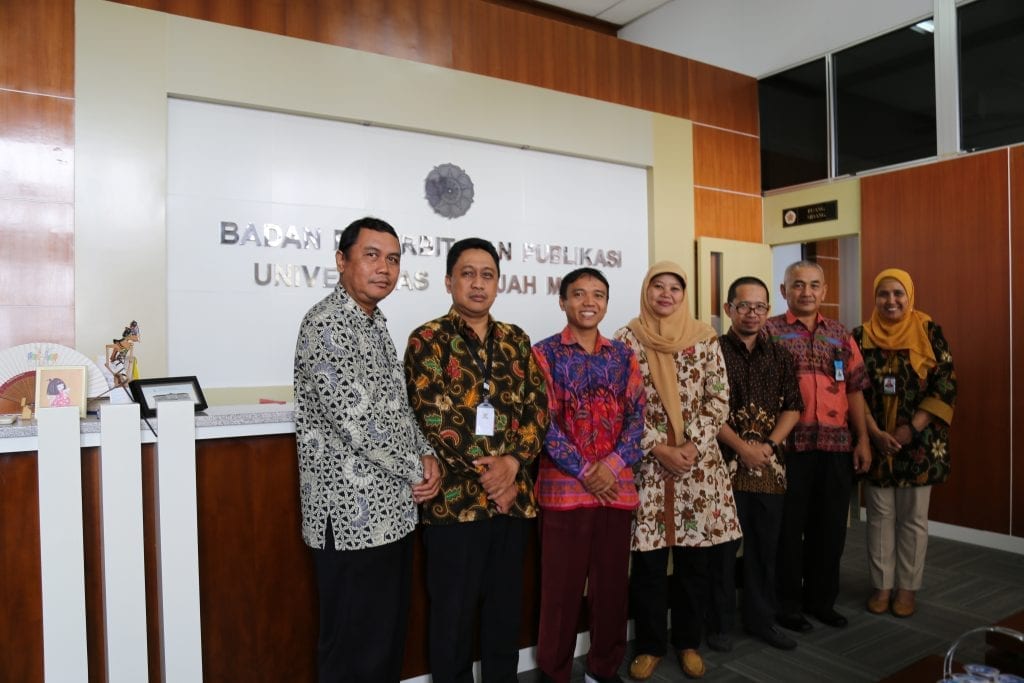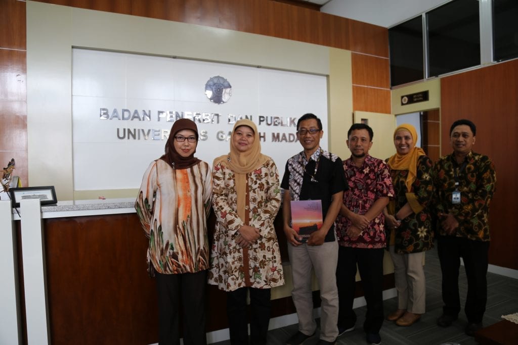 Badan Penerbit dan Publikasi (BPP) UGM menyambut kehadiran tamu dari Universitas Lampung (Unila) dan Universitas Surabaya (Ubaya) dalam rangka studi banding pengelolaan publikasi dan jurnal ilmiah pada Jumat, 9 November 2018. Kunjungan dari Universitas Lampung dihadiri perwakilan sebanyak tiga orang dari unit Pusat Penerbitan Publikasi Ilmiah yang berada di bawah LPPM Unila pada sesi pertama dan  dari unit publikasi Ubaya sebanyak dua orang pada sesi kedua. Bertempat di Ruang Sidang BPP UGM, Dr. Mutiah Amini selaku Sekretaris BPP UGM menyambut hangat kunjungan dari Unila dan Ubaya. Pada pertemuan yang berlangsung pada pagi dan siang hari tersebut Dr. Mutiah Amini, M.Hum memaparkan awal mula berdirinya BPP UGM yang pada awalnya berada di bidang 3 LPPM UGM. Berbagai program peningkatan publikasi, manajemen pengelolaan jurnal, dan kendala-kendala selama pelaksanaan program menjadi topik menarik. Strategi peningkatan publikasi bagi dosen menjadi topik utama pertemuan. Peningkatan publikasi di UGM beberapa tahun terakhir mengalami tren yang terus meningkat baik di level nasional maupun internasional. Hal ini tidak terlepas dari berbagai program yang mendukung target KPI (Key Performance Indicator) UGM. Dibandingkan dengan universitas lain di Indonesia, data dari Scopus memperlihatkan bahwa publikasi UGM pada kategori Q1 & Q2 semakin meningkat jumlahnya. Selain berdiskusi tentang strategi peningkatan publikasi dosen, BPP UGM juga berbagi pengalaman dalam pendampingan proses akreditasi dan indeksasi jurnal-jurnal di UGM. Hadir pula Dr. Siti Nurleily Marliana, M.Sc. selaku editor IJBiotech yang berbagi pengalamannya dalam mengawal IJBiotech terindeks Scopus. Pada 2018 UGM berhasil membawa dua jurnal terindeks Scopus sehingga total jurnal terindeks Scopus UGM pada 2018 sebanyak lima jurnal. Keberhasilan ini memancing semangat tidak hanya UGM, tetapi juga universitas lain dalam mengawal proses indeksasi jurnal mereka. Di luar manajemen publikasi jurnal dan indeksasi jurnal, kunjungan juga membahas penerbitan buku ilmiah di UGM yang dikelola di UGM Press, penerbit yang sudah memiliki nama baik sebagai penerbit universitas. Studi banding dari Unila dan Ubaya ini merupakan salah satu upaya UGM turut meningkatkan  pengelolaan publikasi di universitas lain sehingga berdampak positif pada peningkatan publikasi Indonesia secara lebih luas.